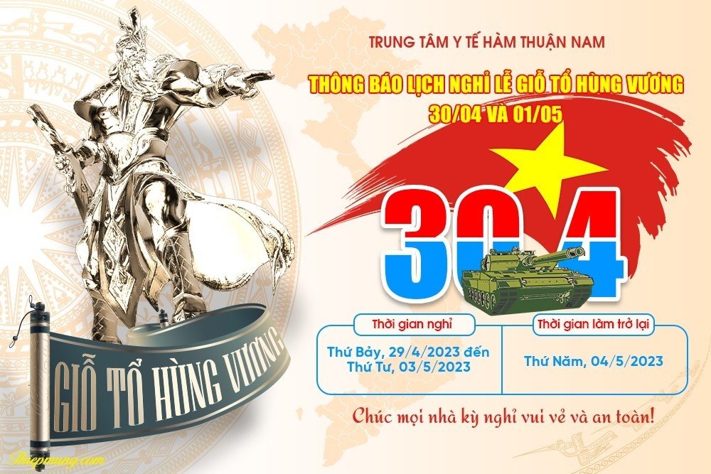 0 min to read Tin tức Posted on 27/04/202327/04/2023 THÔNG BÁO NGHỈ LỄ GIỖ TỔ HÙNG VƯƠNG VÀ LỄ 30/4-1/5 By TTYT Hàm Thuận Nam